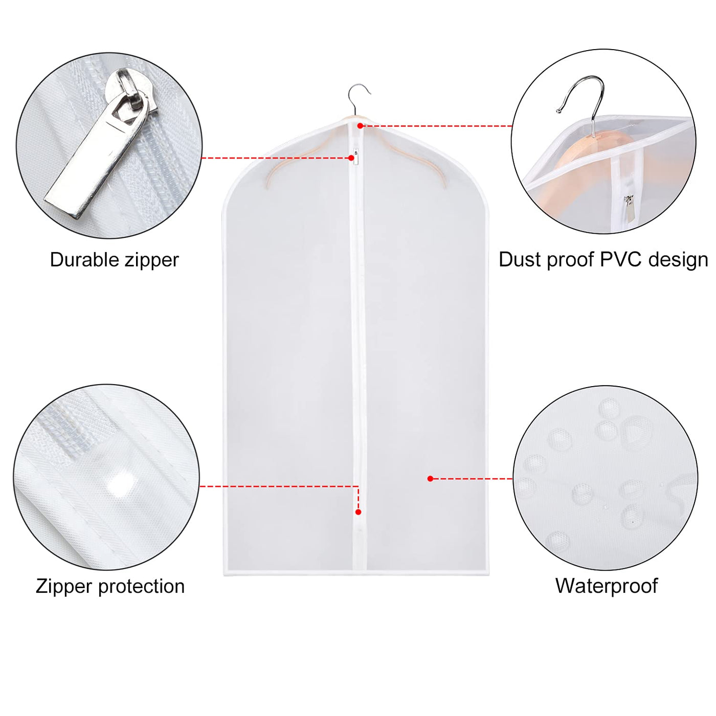 Zilink Clear Garment Bags Suit Bag for Storage 40-inch with Sturdy Zipper Dust-Proof Suit Cover Protector for Suit Coat Dress Clothes Cover Storage Set of 15