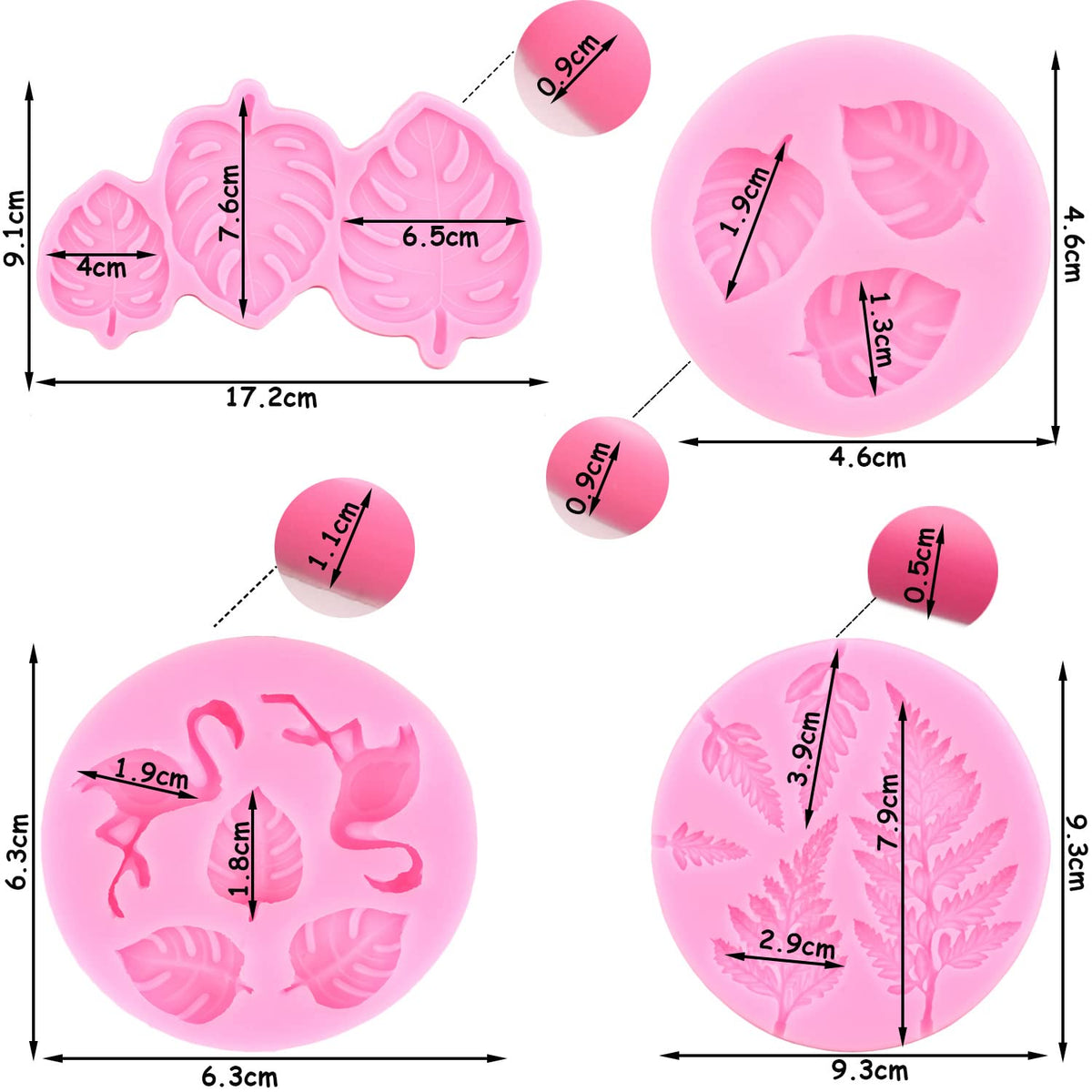 - Q: How many molds are included in the set? A: The set includes four silicone molds, each representing a different tropical leaf design.