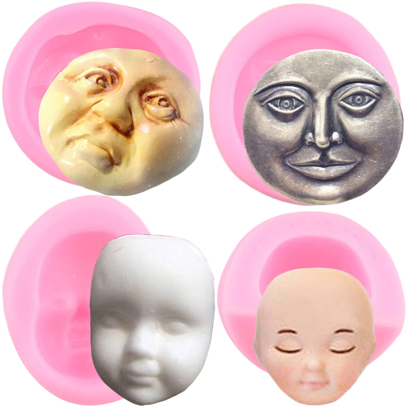 Zixiang Moon Face Silicone Molds Human Face Fondant Mold For Cake Decorating Cupcake Topper Candy Polymer Clay Chocolate Gum Pas