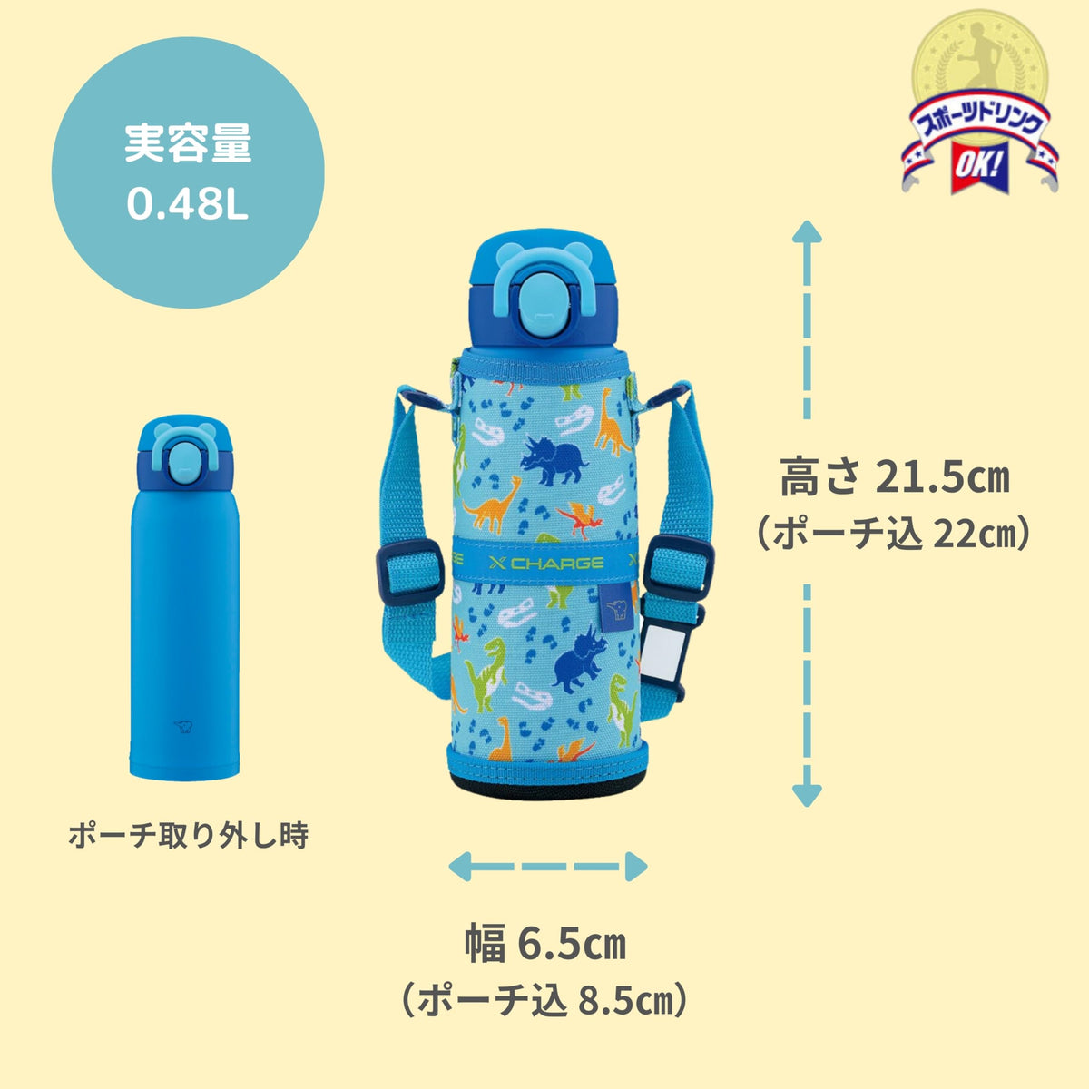 Zojirushi SM-UA48-AJ Water Bottle Kids One-Touch Stainless Steel Mug Seamless 1.6 fl oz (0.48 L) Dinosaur Blue