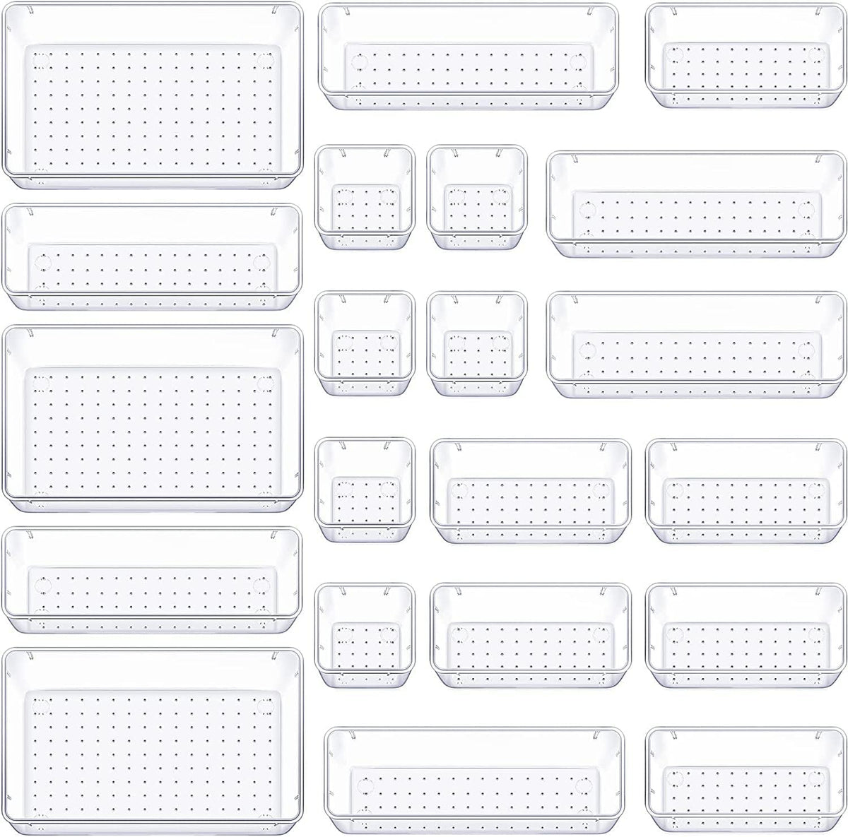Zollyss Bathroom Drawer Tray Dividers Plastic Vanity Organizers Storage Bins for Makeup Dresser Tray, Clear (21 Pcs)