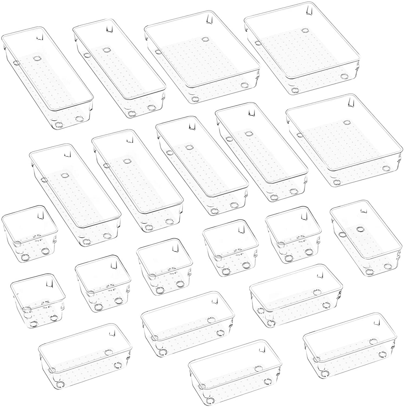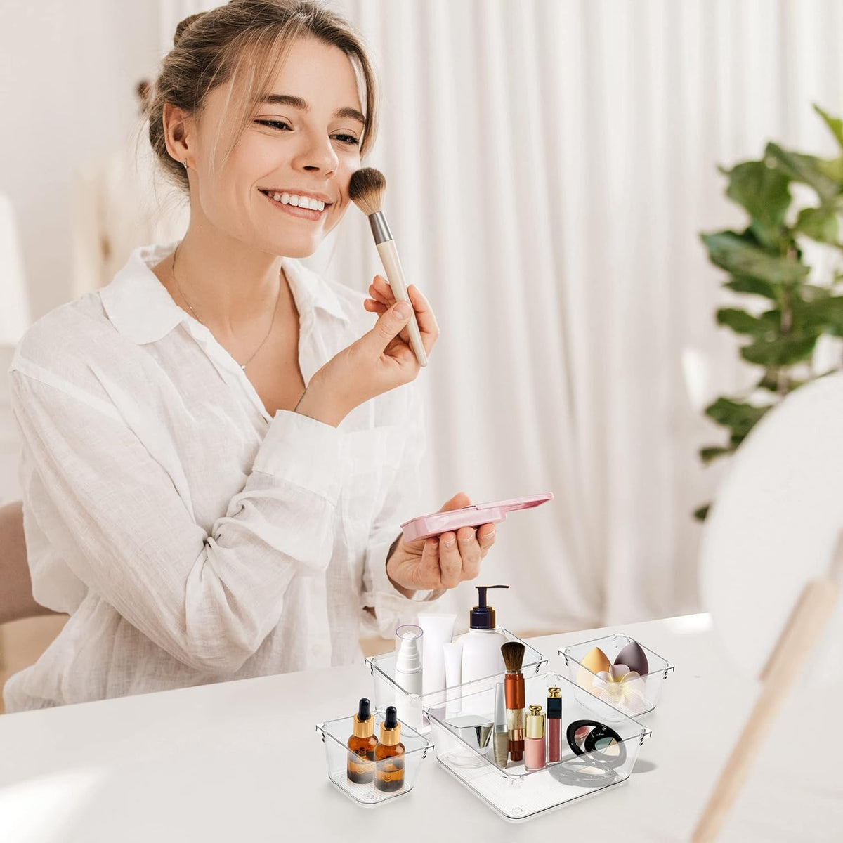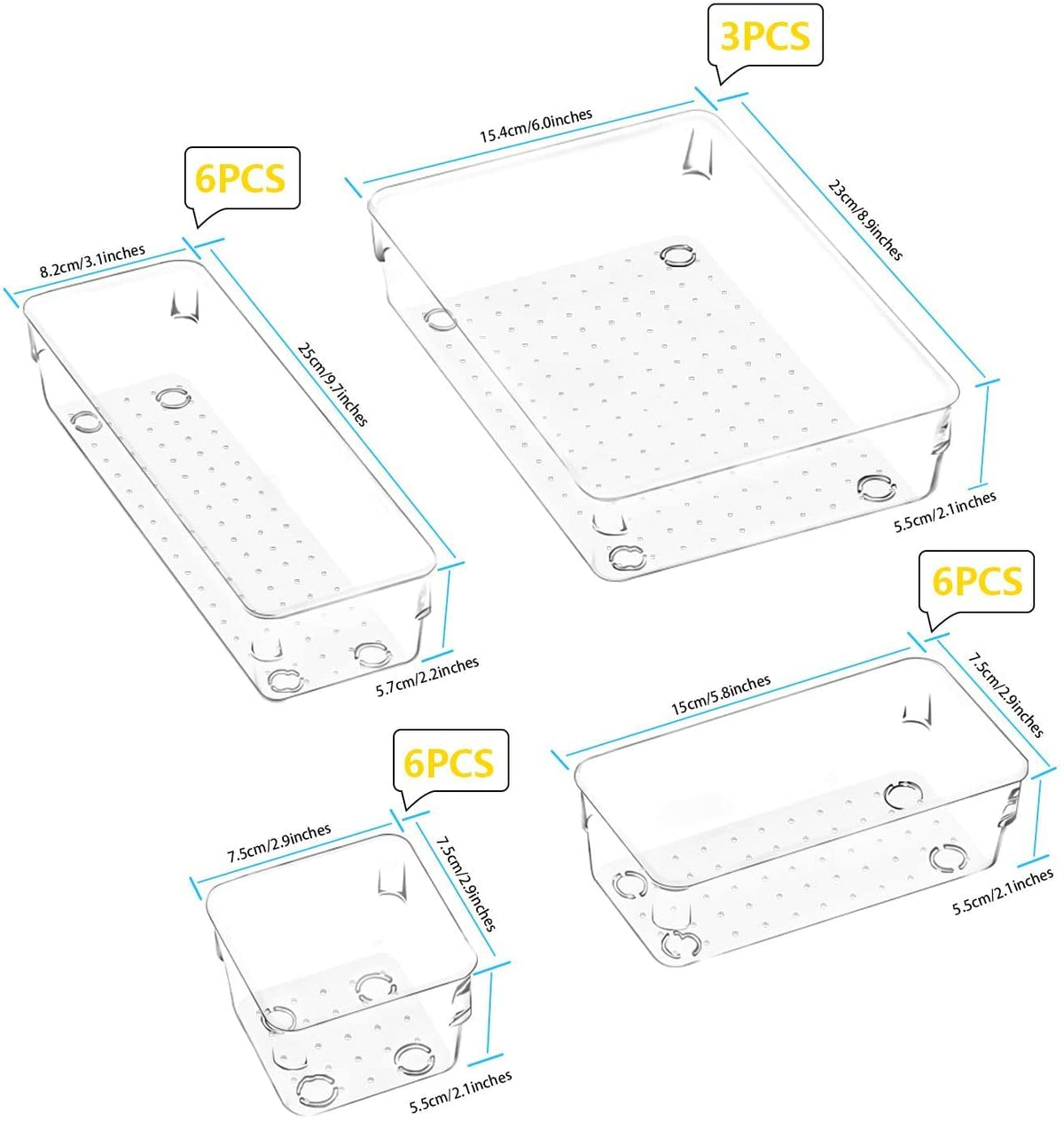 Zollyss Desk Drawer Organizers Trays Set Clear Plastic Storage Bins Bathroom Drawer Tray Dividers Vanity Trays Organizer For Bed