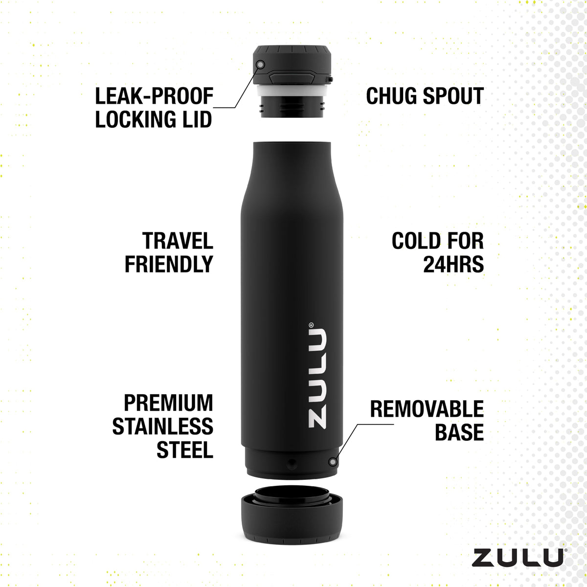 ZULU Ace Vacuum Insulated Stainless Steel Water Bottle with Leak-Proof Locking Lid and Removable Base Black 24oz