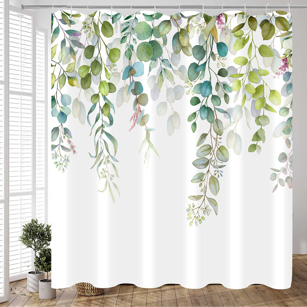 - Q: What is the design theme of the shower curtain? A: The shower curtain features a unique design with green eucalyptus and plant patterns, creating a refreshing bathroom ambiance.