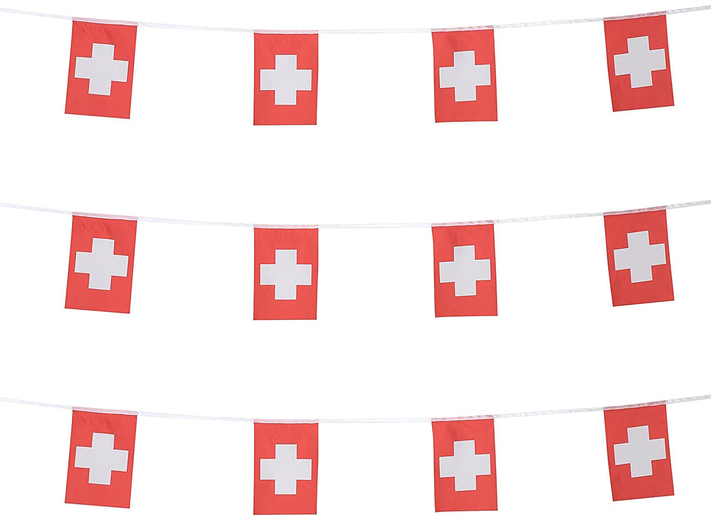 Zxvzyt Switzerland Swiss Flag Banner String,Small Mini Switzerland Pennant Flags,For Grand Opening,Olympics,National Sports Even