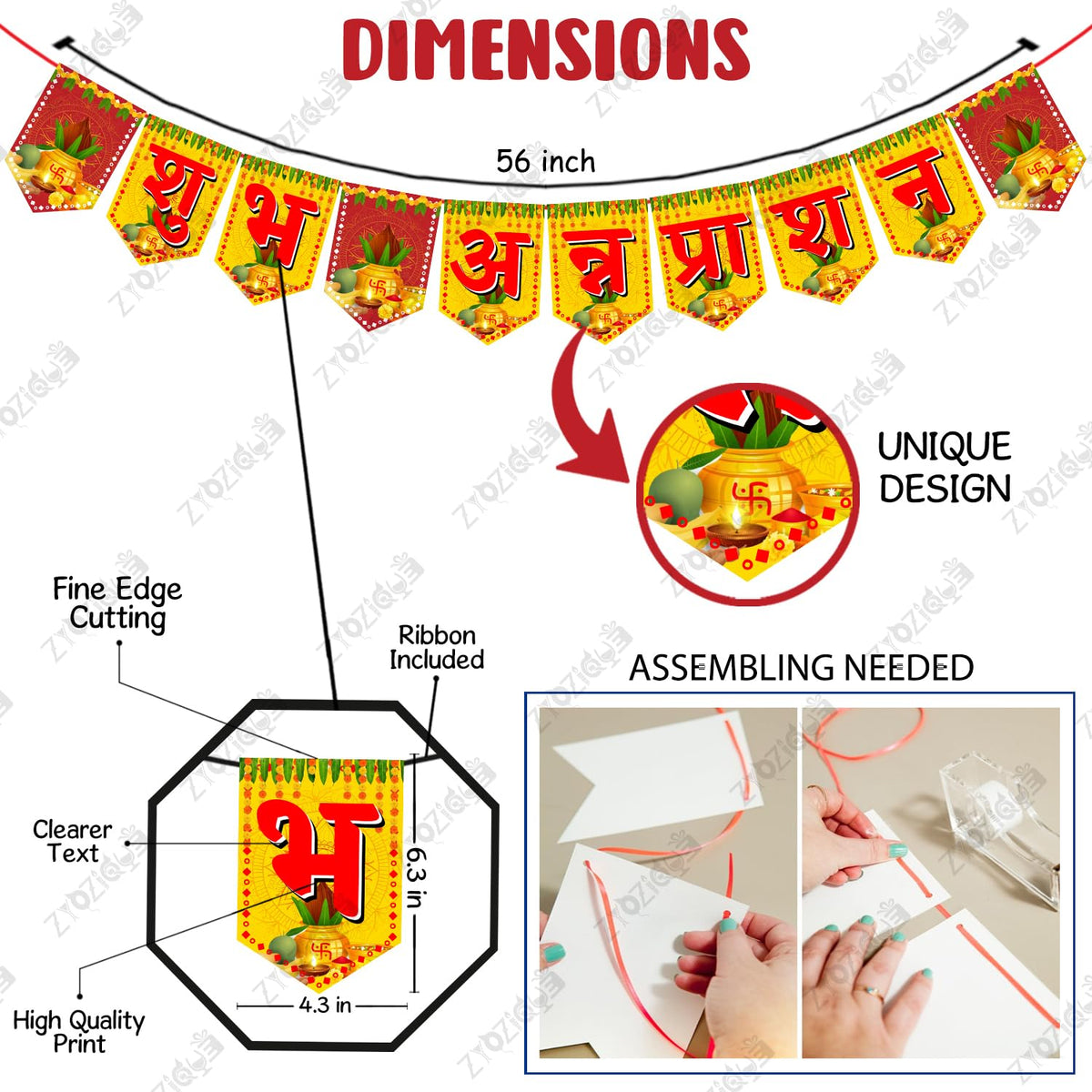 Zyozique Annaprasanam Photo Booth Props With Annaprasanam Paper Bunting Paper Banner Hindi Font Shubh Annaprashan | Rice Ceremo